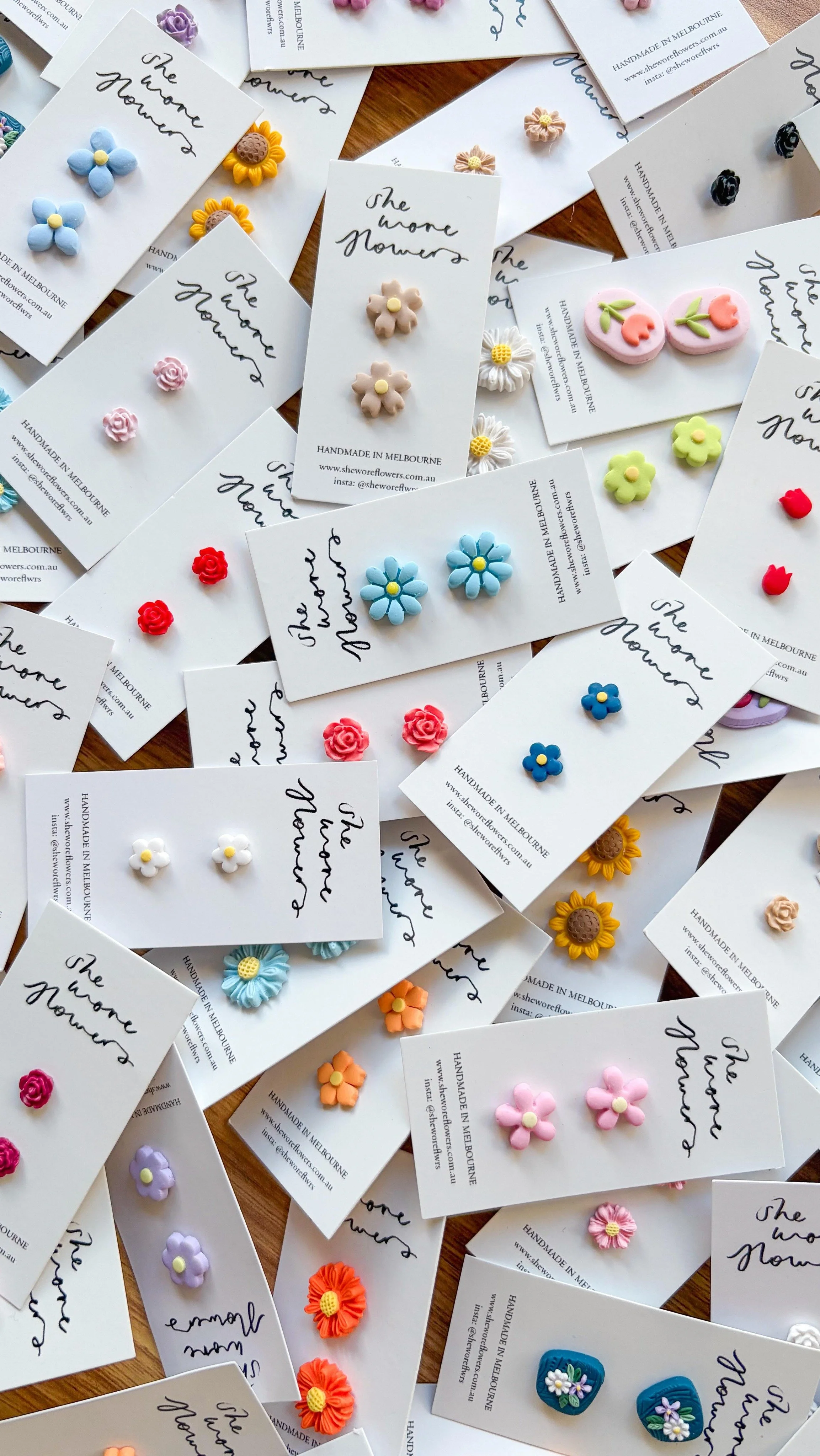 One day while I was crafting away in my home studio I discovered a particular joy in making jewellery to match the colourful and fun vintage fabrics I’ve obsessively hoarded over the years. At first I made pieces just for myself, but quickly I started getting requests from friends (and their friends!) and so began She Wore Flowers.