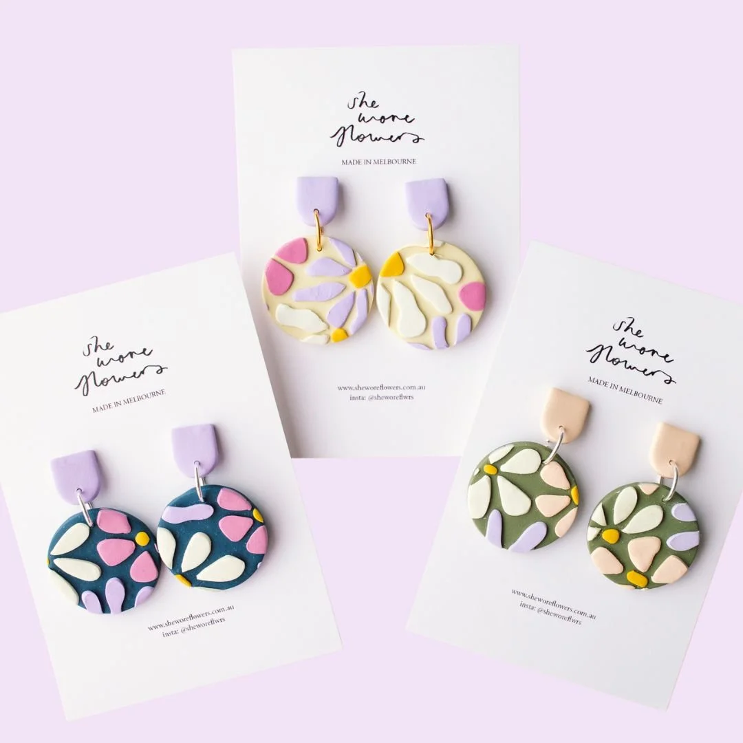 One day while I was crafting away in my home studio I discovered a particular joy in making jewellery to match the colourful and fun vintage fabrics Iโve obsessively hoarded over the years. At first I made pieces just for myself, but quickly I started getting requests from friends (and their friends!) and so began She Wore Flowers.